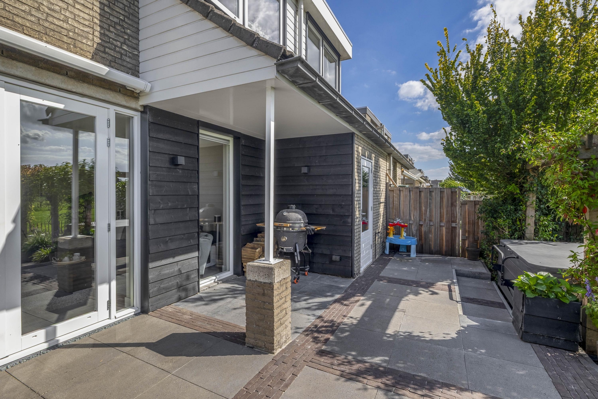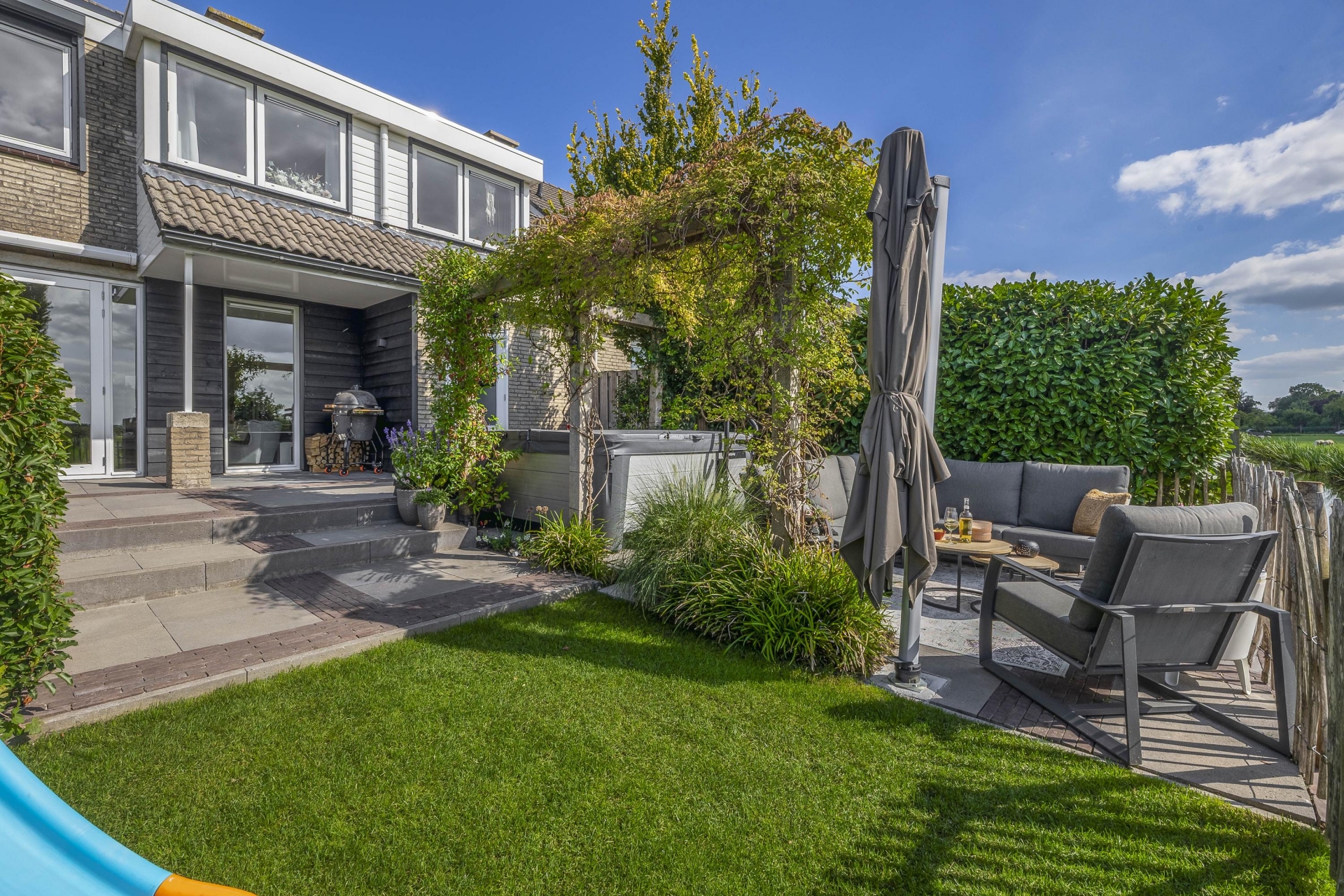 De moderne keuken aan de voorzijde is voorzien van alle gemakken. Denk aan moderne apparatuur, veel werkruimte en een praktische indeling – ideaal voor wie graag kookt of gasten ontvangt. Vanuit de zitkamer stap je via openslaande deuren de zonnige achtertuin in. Dankzij de westelijke ligging kun je hier vanaf de middag tot in de avond genieten van de zon. De tuin is strak aangelegd, heeft meerdere zitplekken en grenst direct aan het water – een heerlijke plek om tot rust te komen. De garage is eveneens vanuit de zitkamer bereikbaar, enorm praktisch dus.