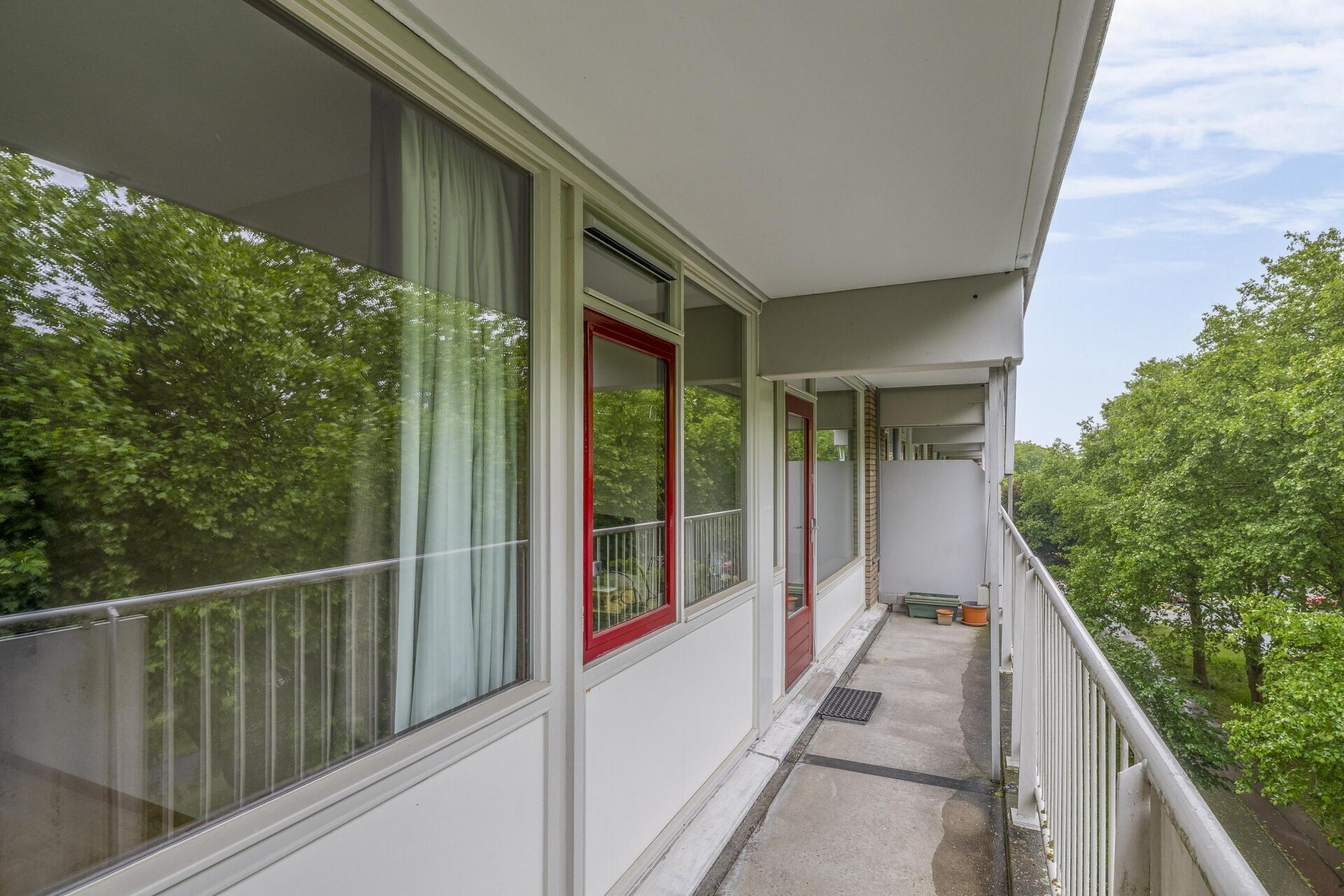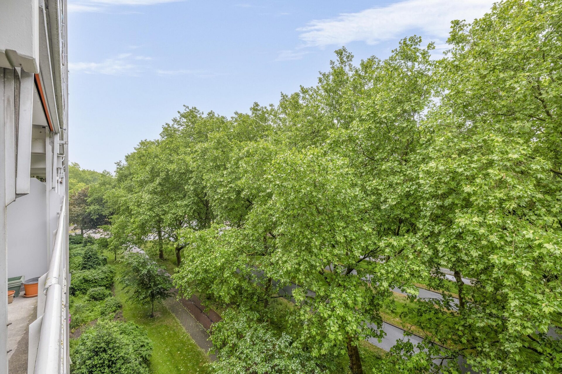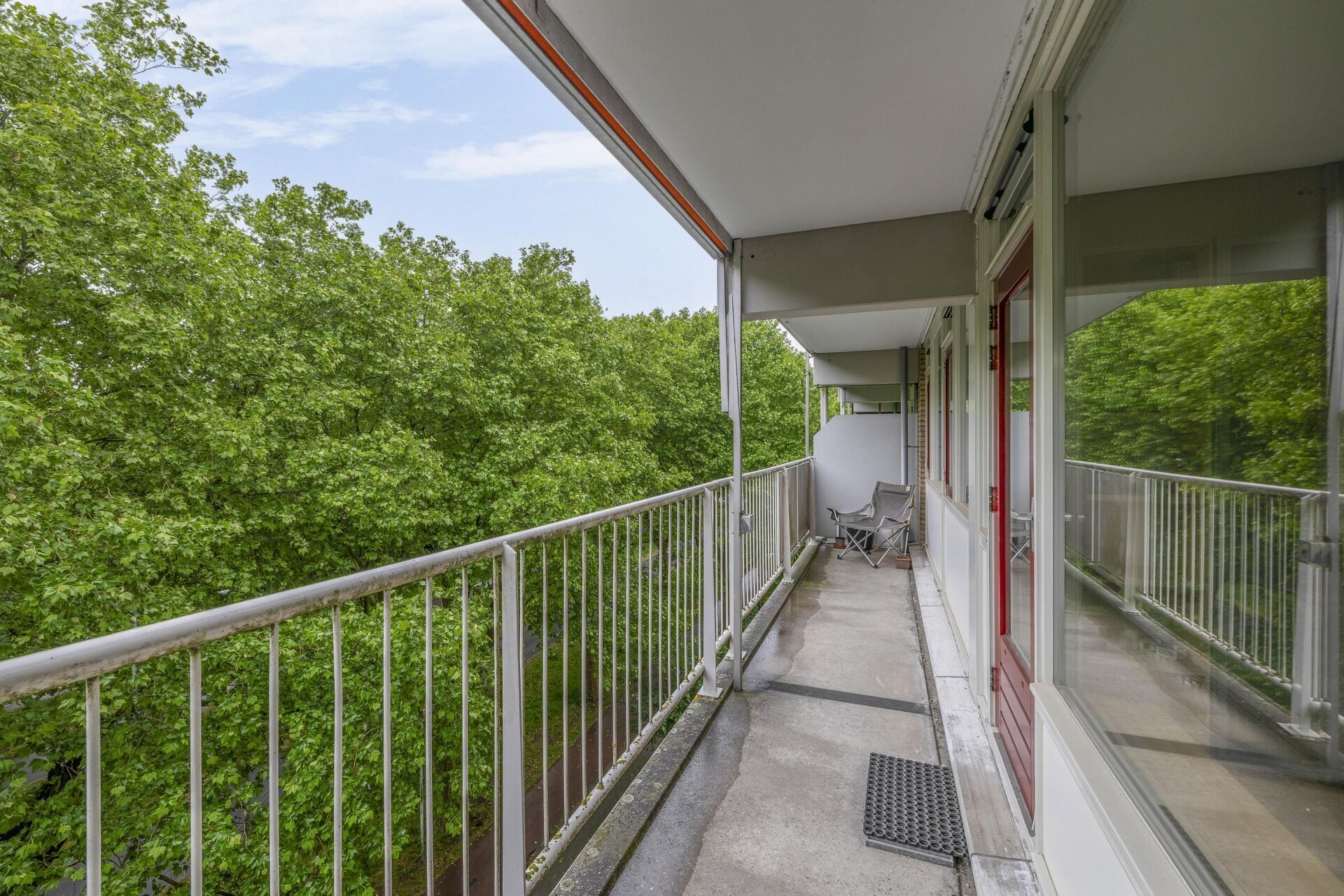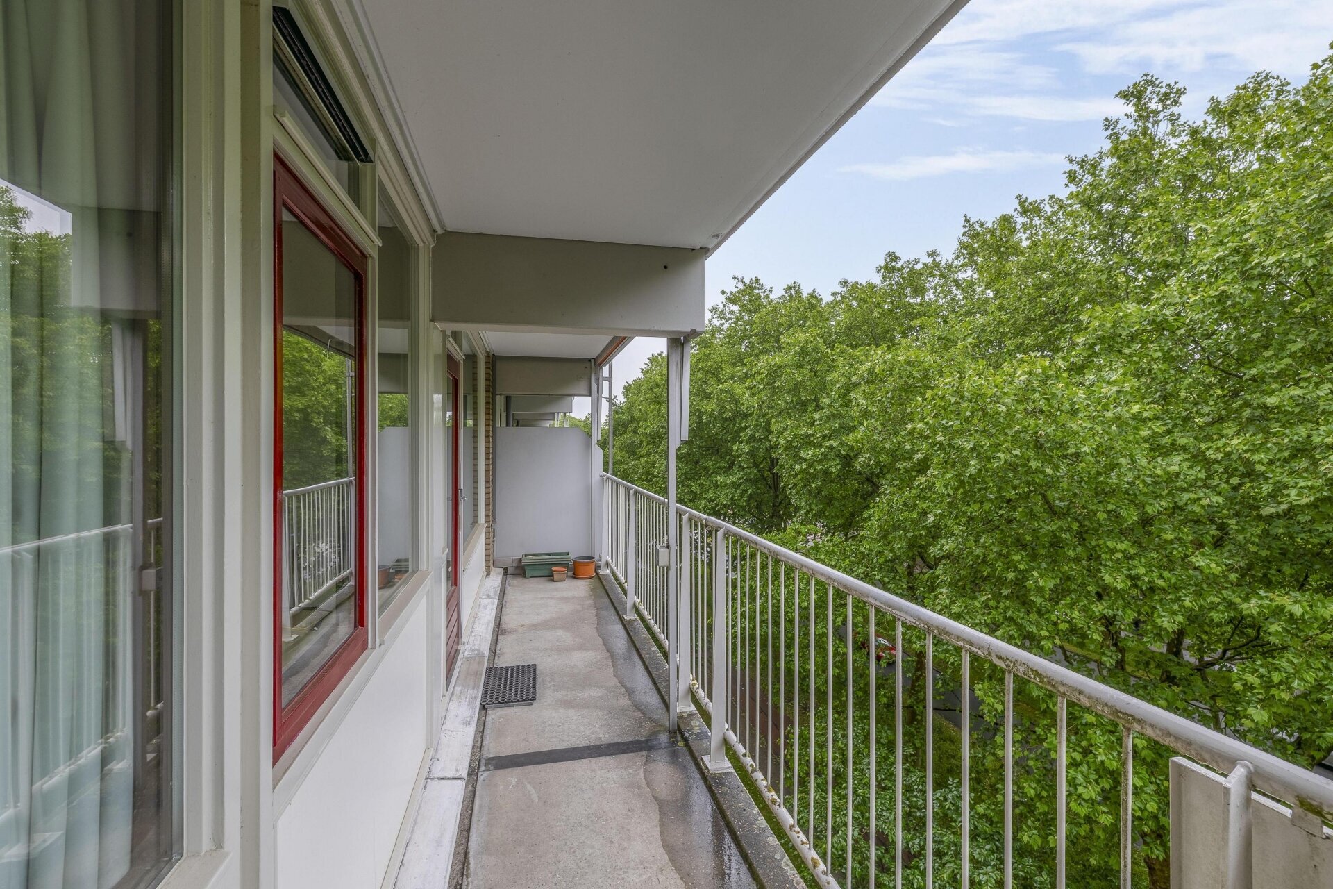 De beschutte ligging is één van de blikvangers van dit appartement. Hierdoor biedt het balkon veel rust en privacy. Tevens ligt het balkon over de volledige breedte van het appartement en is het zonnig gesitueerd, namelijk op het zuiden. Liever een plek in de schaduw? Dat kan met behulp van het aanwezige zonnescherm.