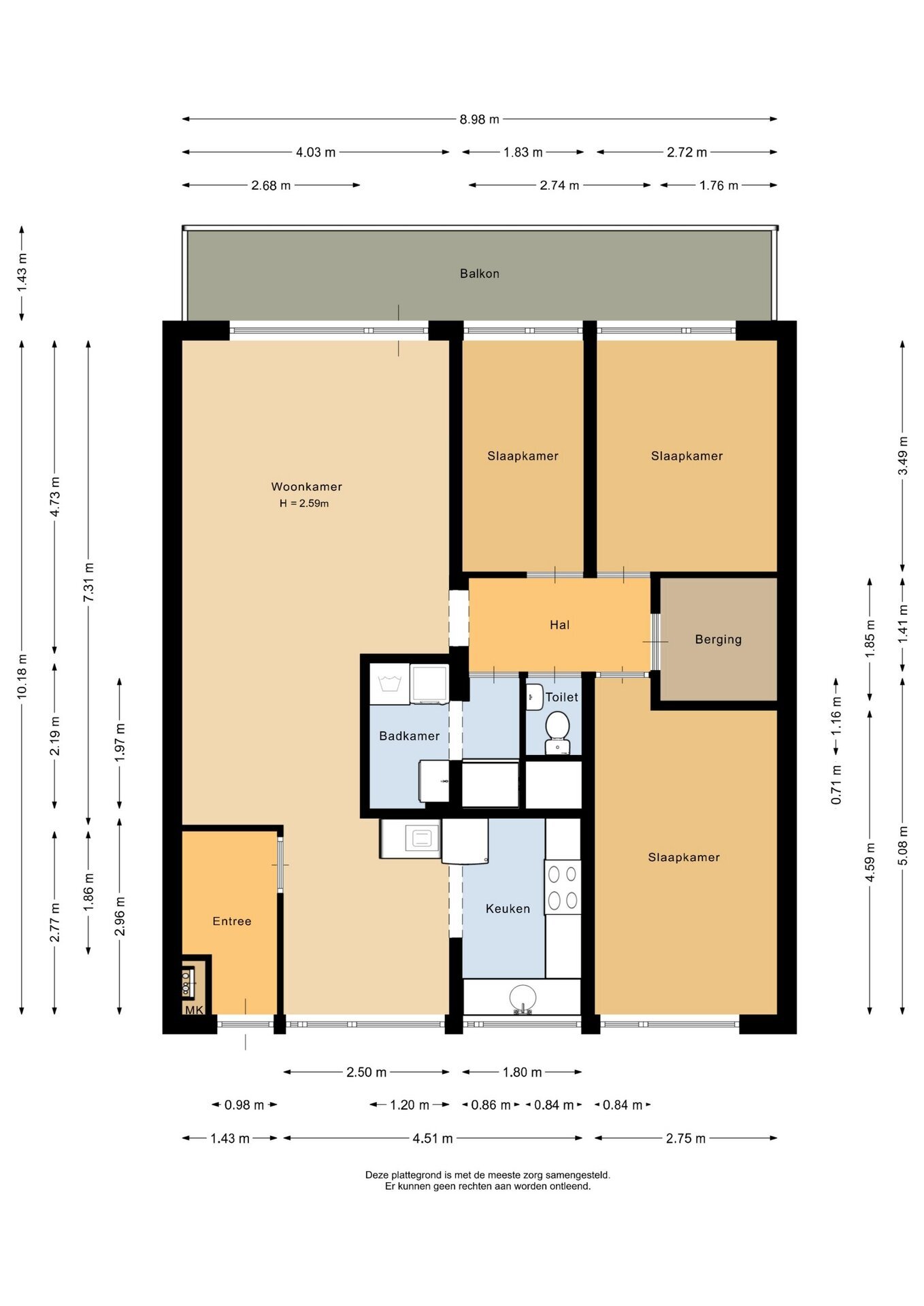 “Deze informatie is door ons met de nodige zorgvuldigheid samengesteld. Onzerzijds wordt echter geen enkele aansprakelijkheid aanvaard voor enige onvolledigheid, onjuistheid of anderszins, dan wel de gevolgen daarvan. Alle opgegeven maten en oppervlakten zijn indicatief.”