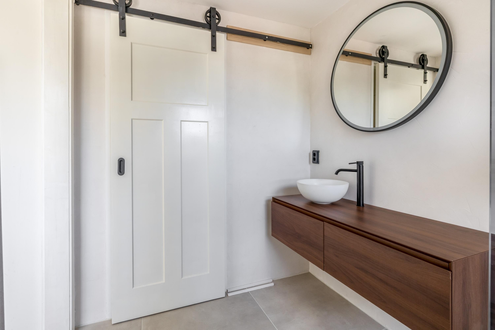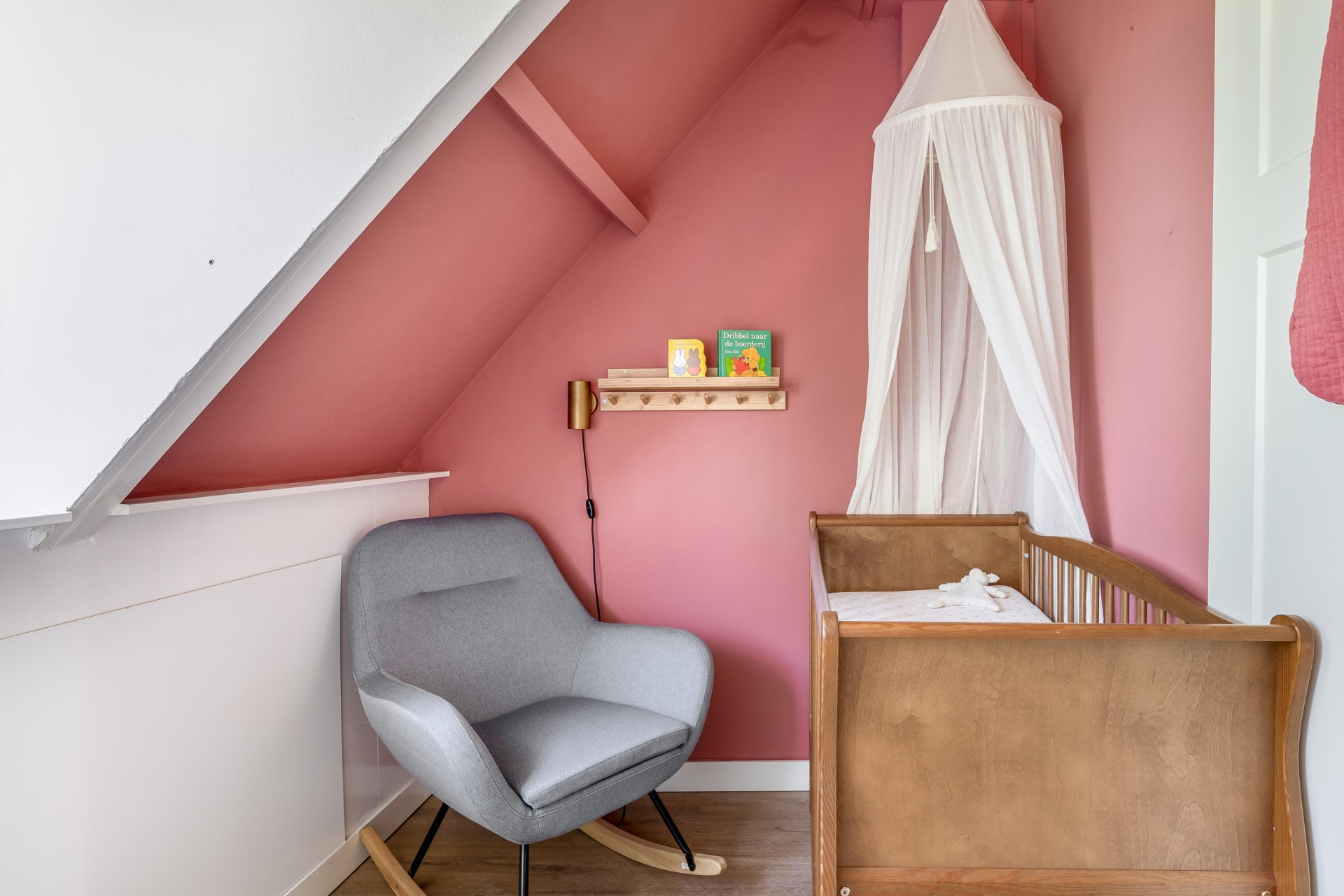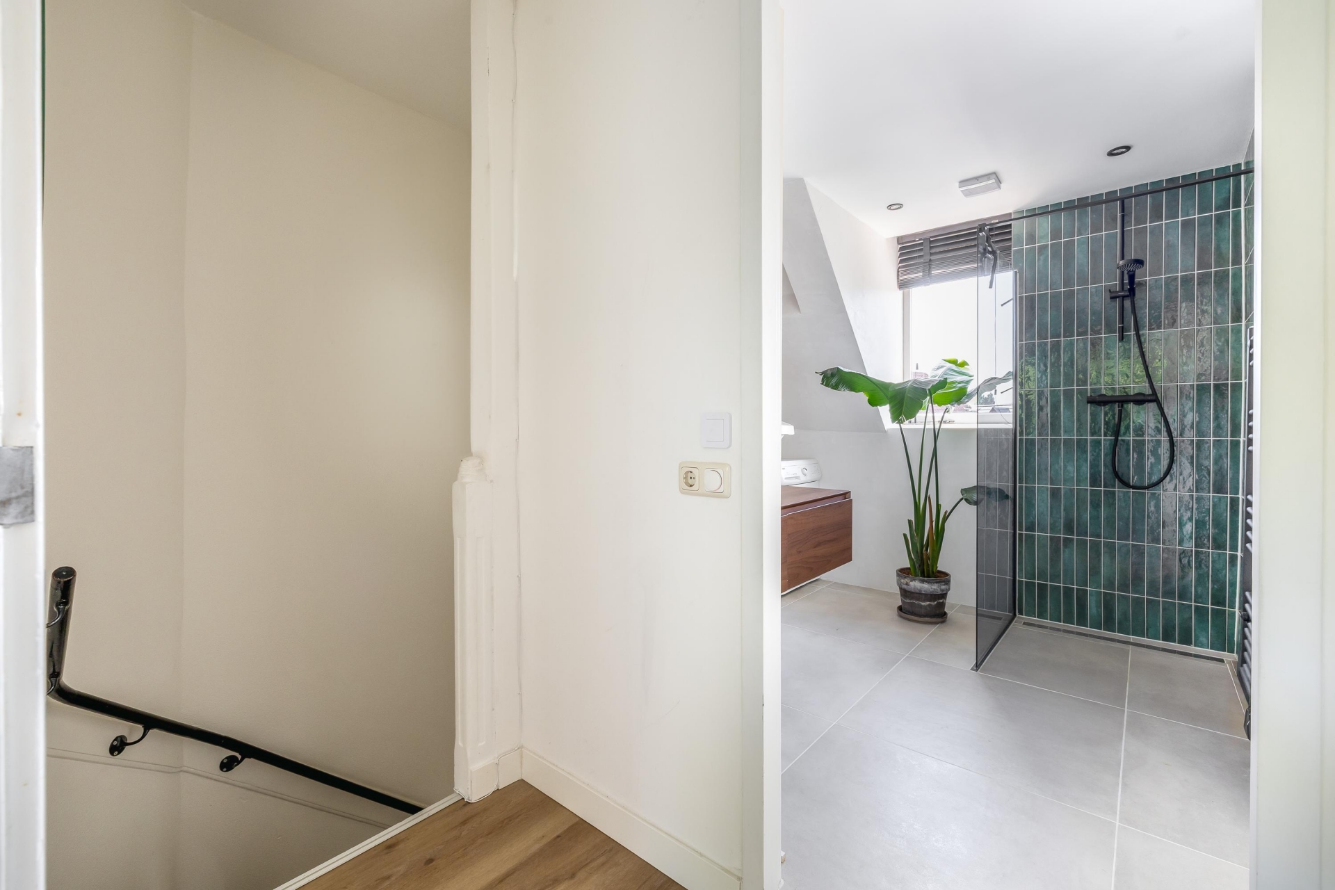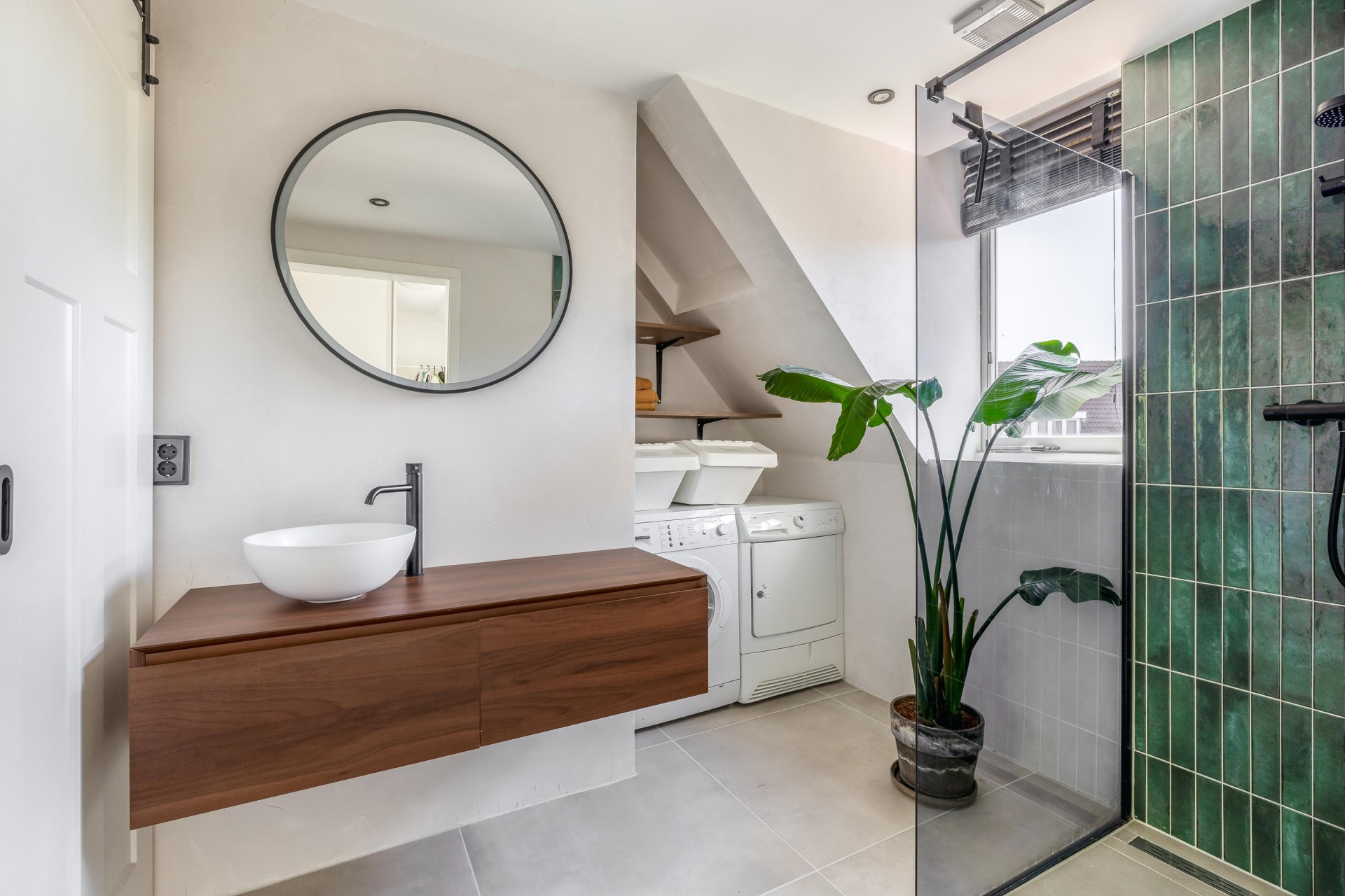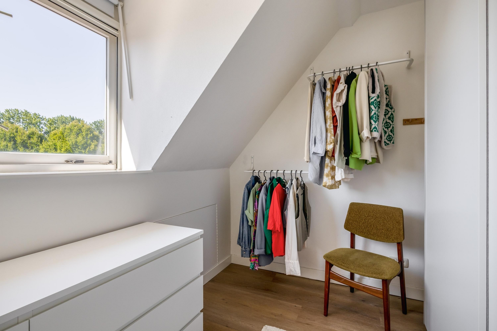 Op de tweede verdieping bevindt zich het slaapgedeelte van het huis. De master bedroom is ruim en licht, met plek voor een groot bed. Daarnaast zijn er nog twee slaapkamers, waarvan er één op dit moment is ingericht als kleedkamer. Deze kamer is toegankelijk via de moderne badkamer, die recent is vernieuwd en strak is afgewerkt met warme materialen, een inloopdouche, mooi wastafelmeubel en een nis met ruimte voor de wasmachine en droger. Hier is echt goed nagedacht over indeling en gebruiksgemak.