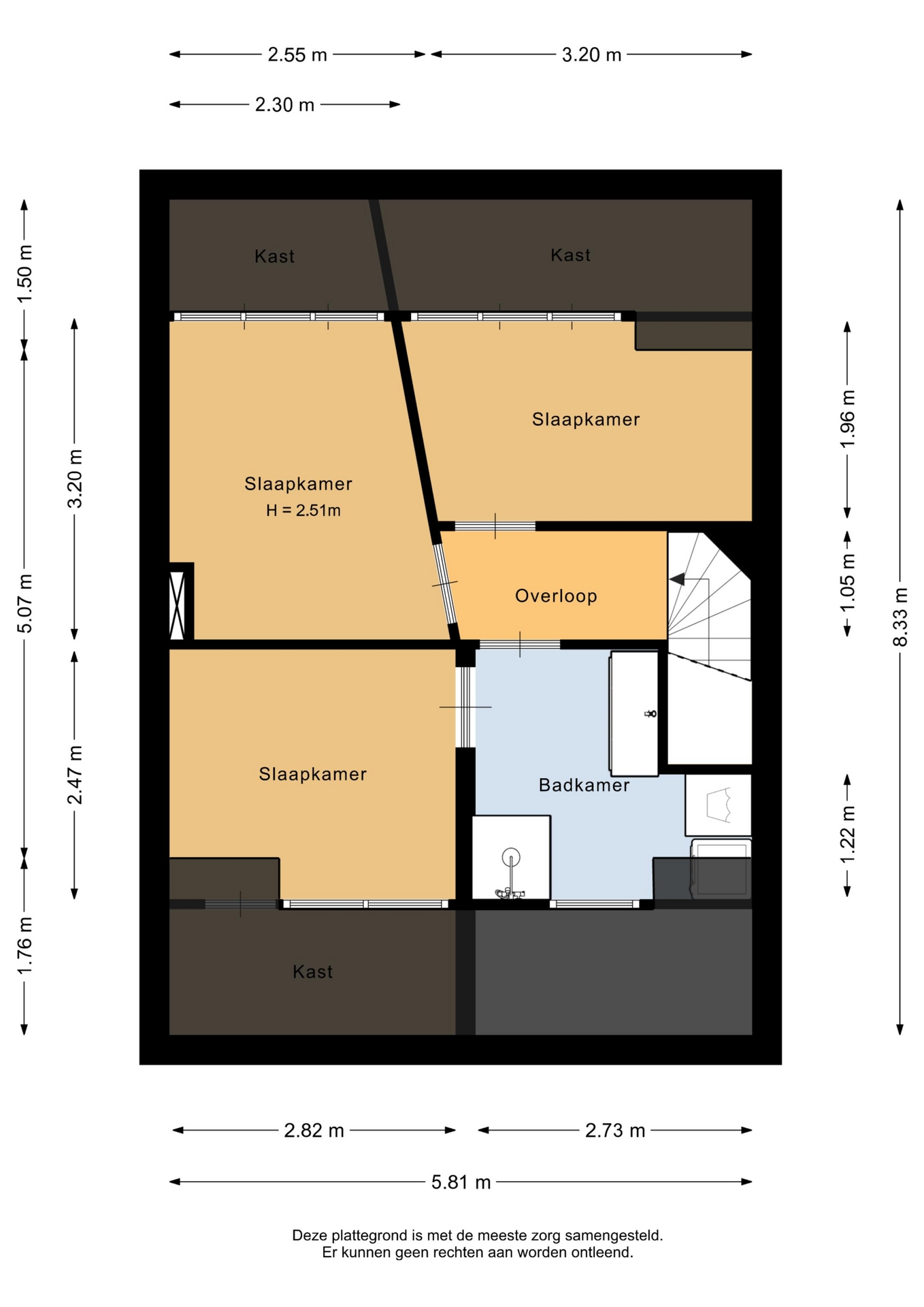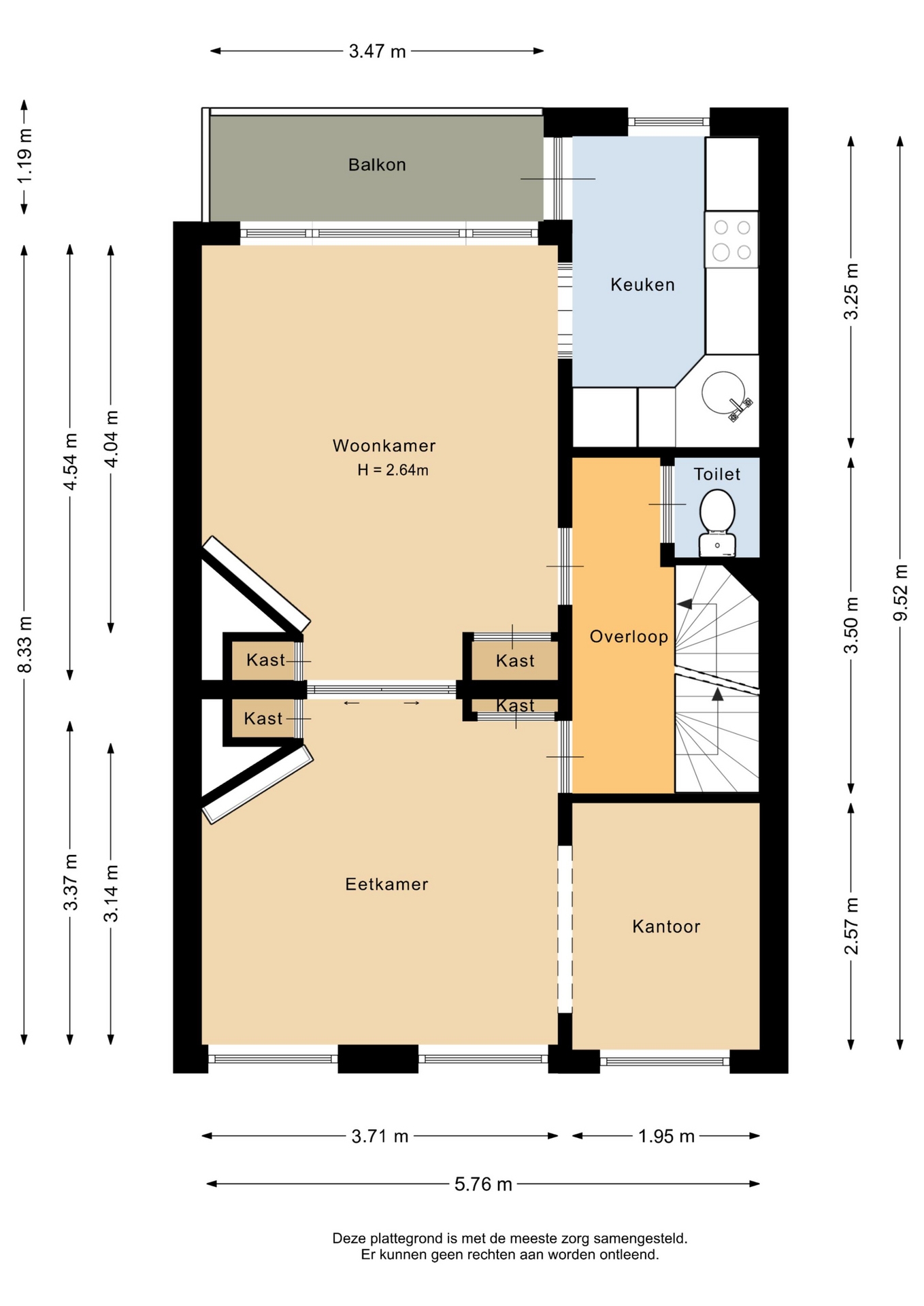“Deze informatie is door ons met de nodige zorgvuldigheid samengesteld. Onzerzijds wordt echter geen enkele aansprakelijkheid aanvaard voor enige onvolledigheid, onjuistheid of anderszins, dan wel de gevolgen daarvan. Alle opgegeven maten en oppervlakten zijn indicatief.”