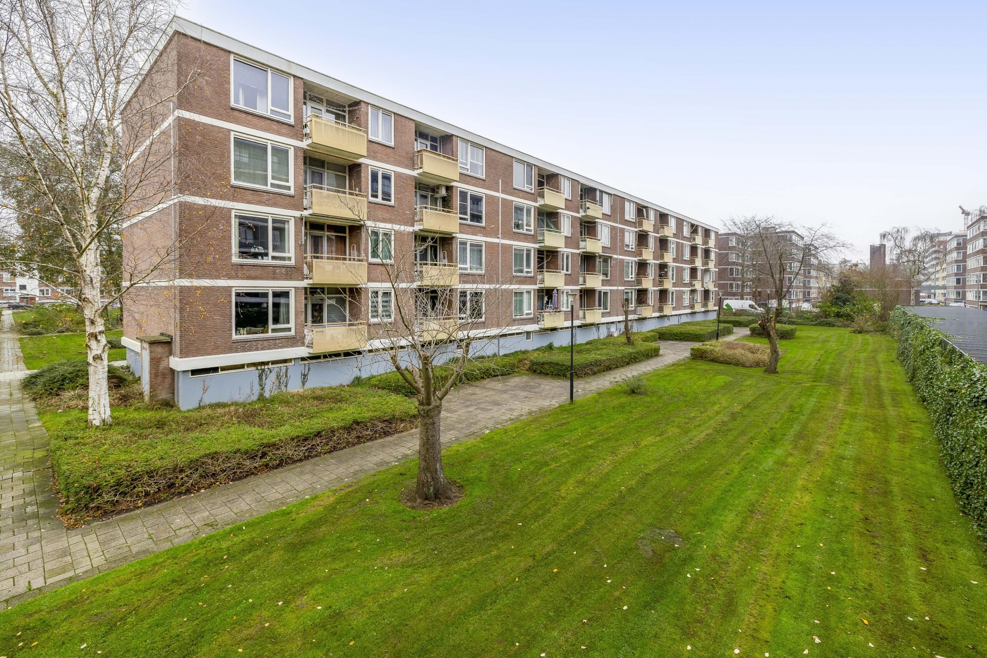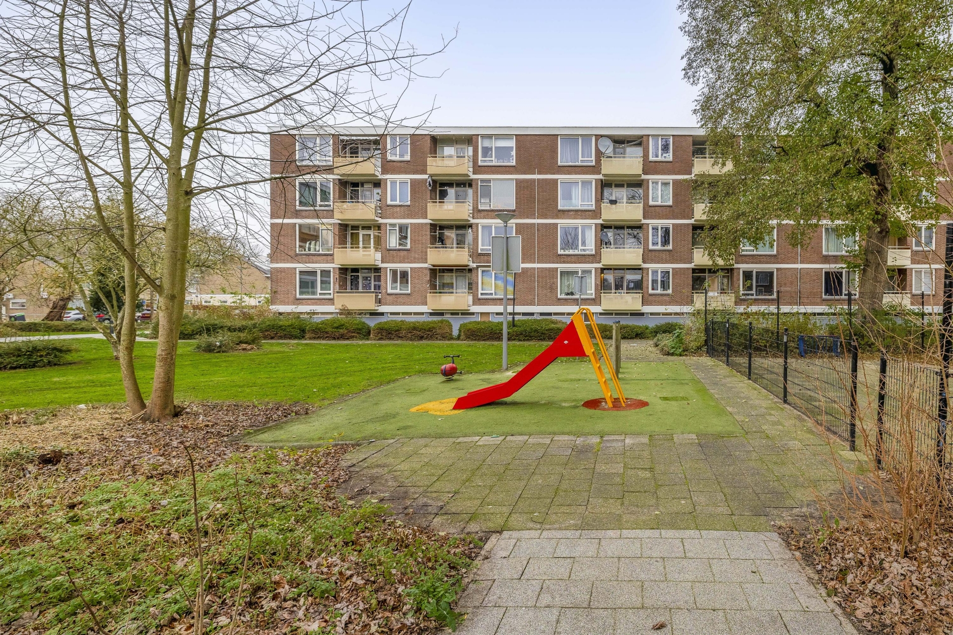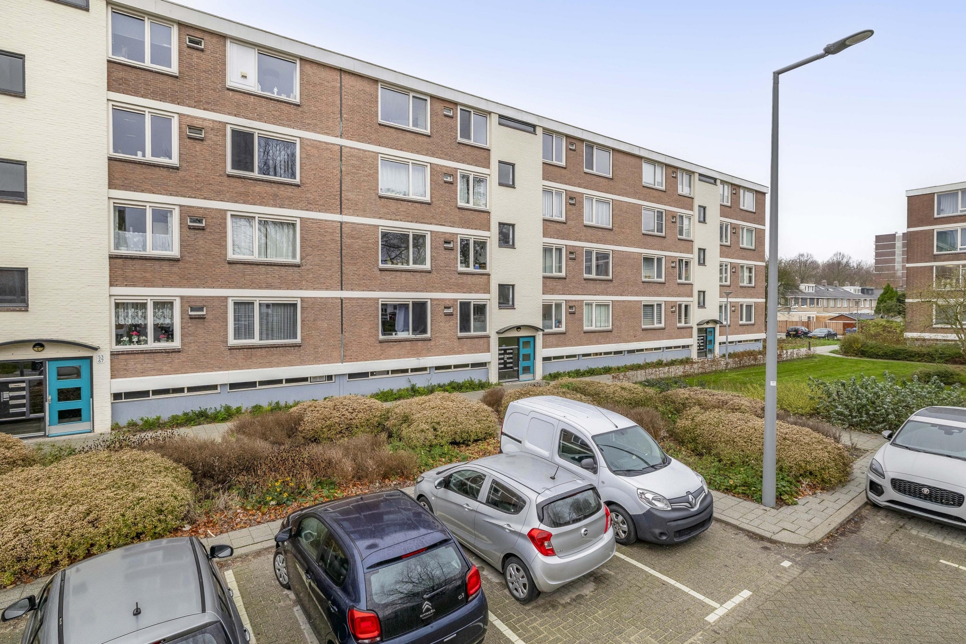 Het appartement maakt deel uit van een verzorgd appartementencomplex met een actieve VvE. De gemeenschappelijke entree is netjes onderhouden en er is een afgesloten portiek. Rondom het gebouw ligt een groene zone met grasvelden en beplanting – een fijne, open sfeer waar je niet direct tegen andere gevels aankijkt. Ook prettig: je woont hier in een wijk waar bewoners oog hebben voor hun omgeving en het straatbeeld verzorgd is.
