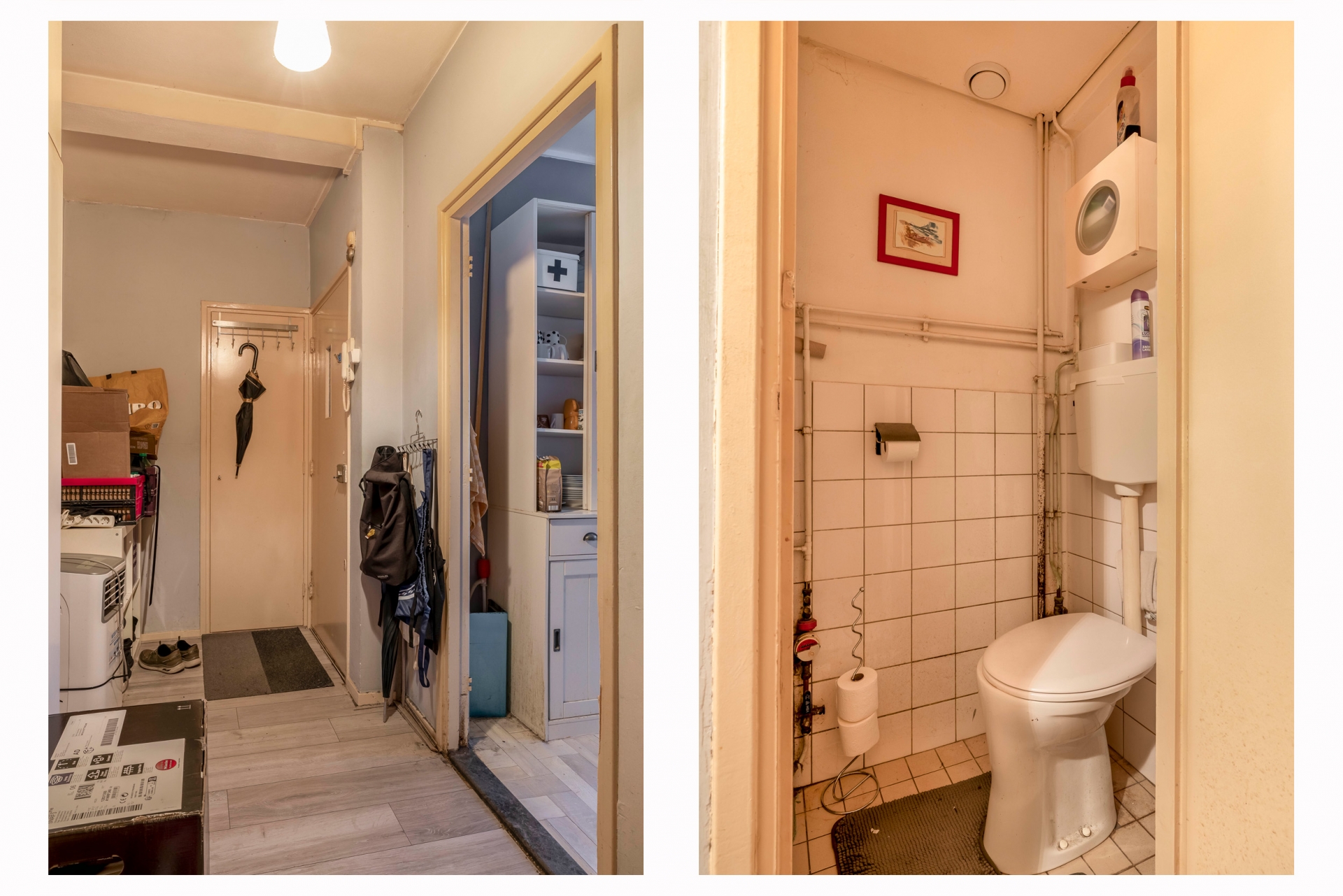 Bij binnenkomst stap je de hal binnen van waaruit je toegang hebt tot alle vertrekken. De woonkamer is knus maar licht, met grote raampartijen die zorgen voor een prettige sfeer. Er is genoeg plek voor een zit- en eethoek en via de kleine slaapkamer bereik je het balkon – gelegen op het westen. Ideaal voor een avondzonnetje na je werk. De aparte keuken heeft een rechte opstelling met voldoende werkruimte, en biedt tevens toegang tot de badkamer. Het toilet is apart gesitueerd, wat extra comfort biedt. De keuken is netjes en functioneel ingericht, met een lichte kleurstelling en praktische indeling.