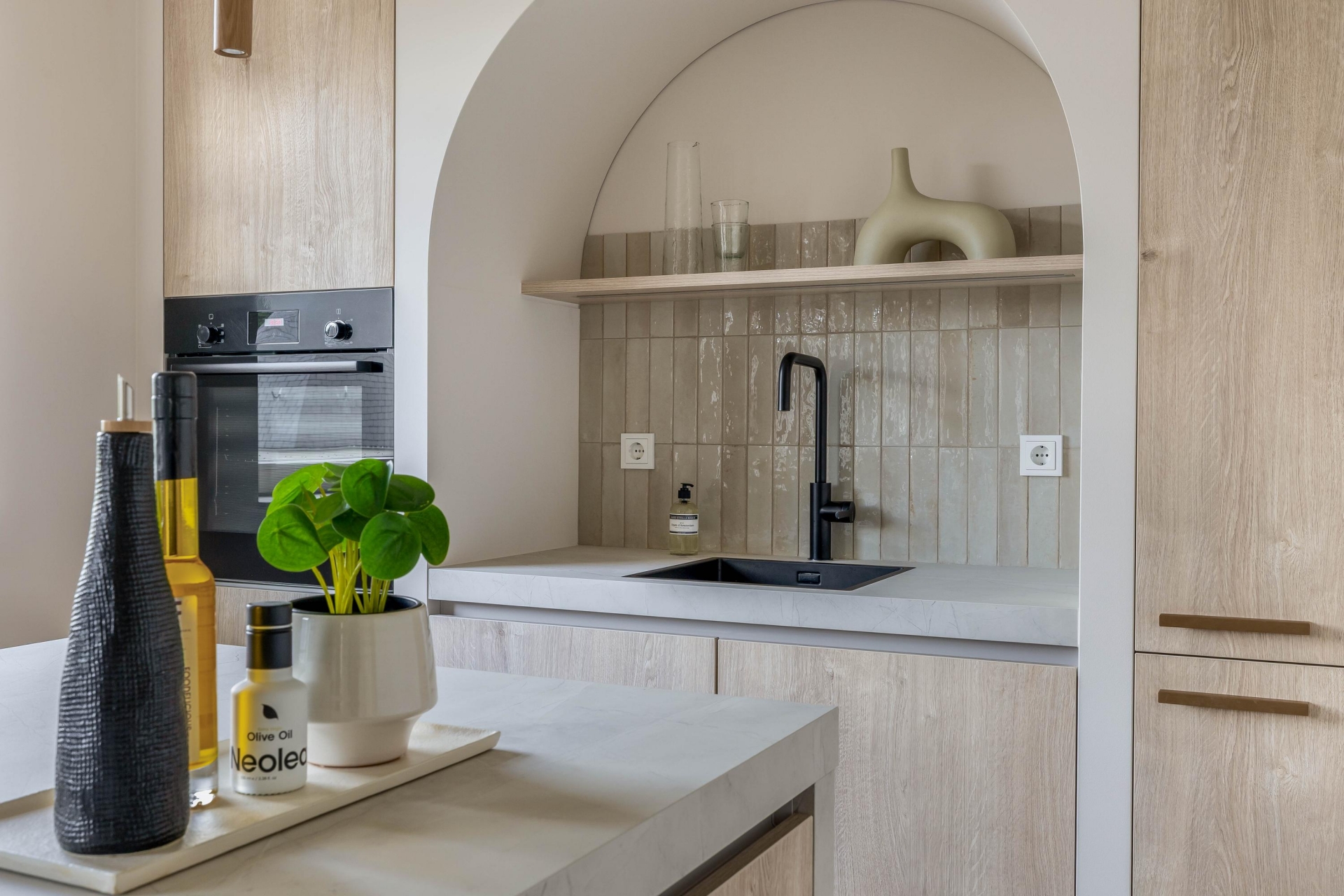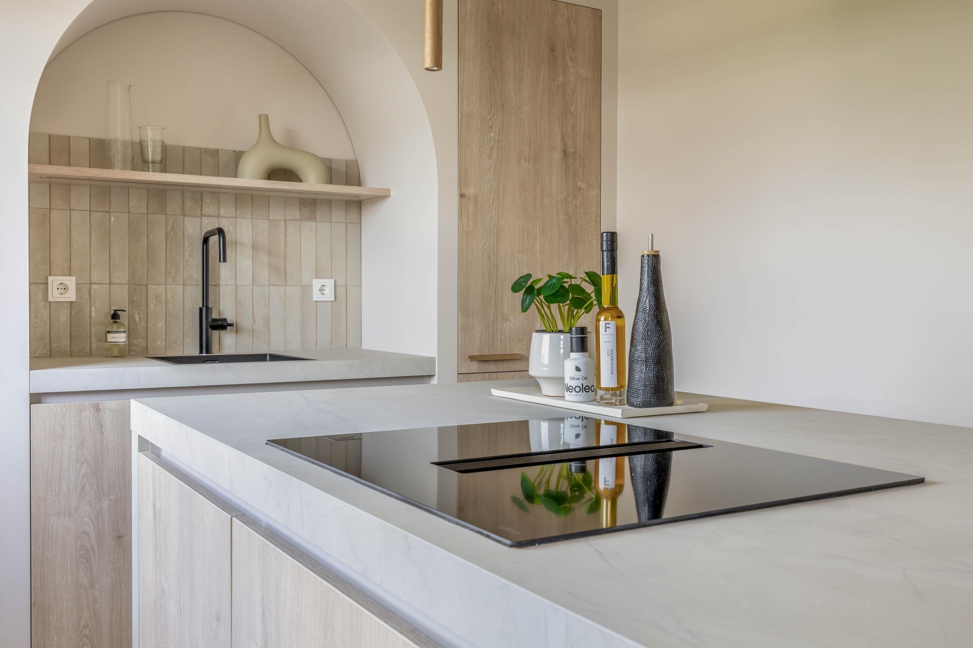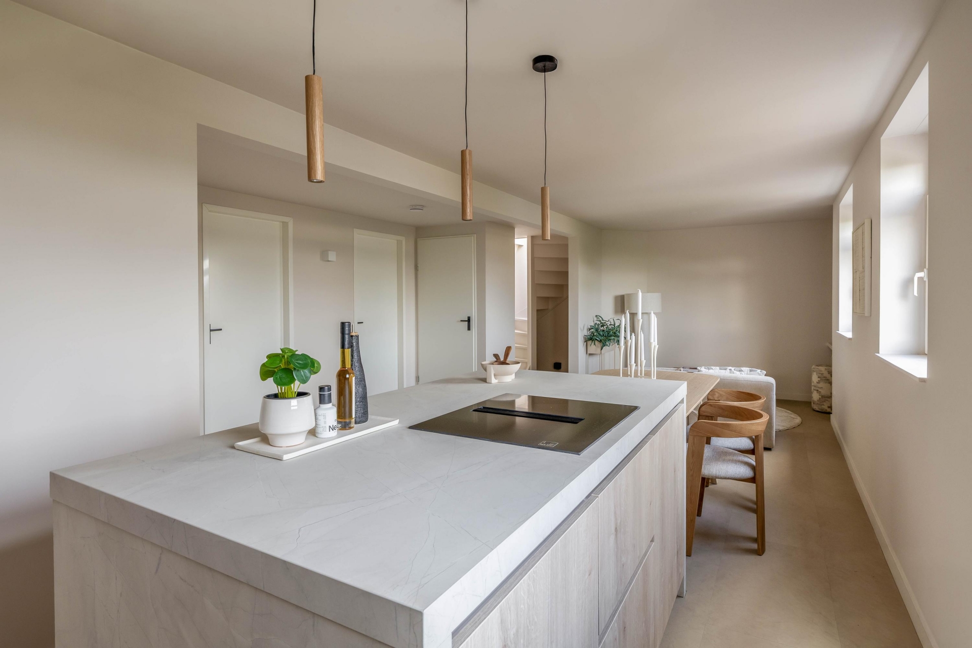 - Moderne keuken met kookeiland en geïntegreerde afzuigkap