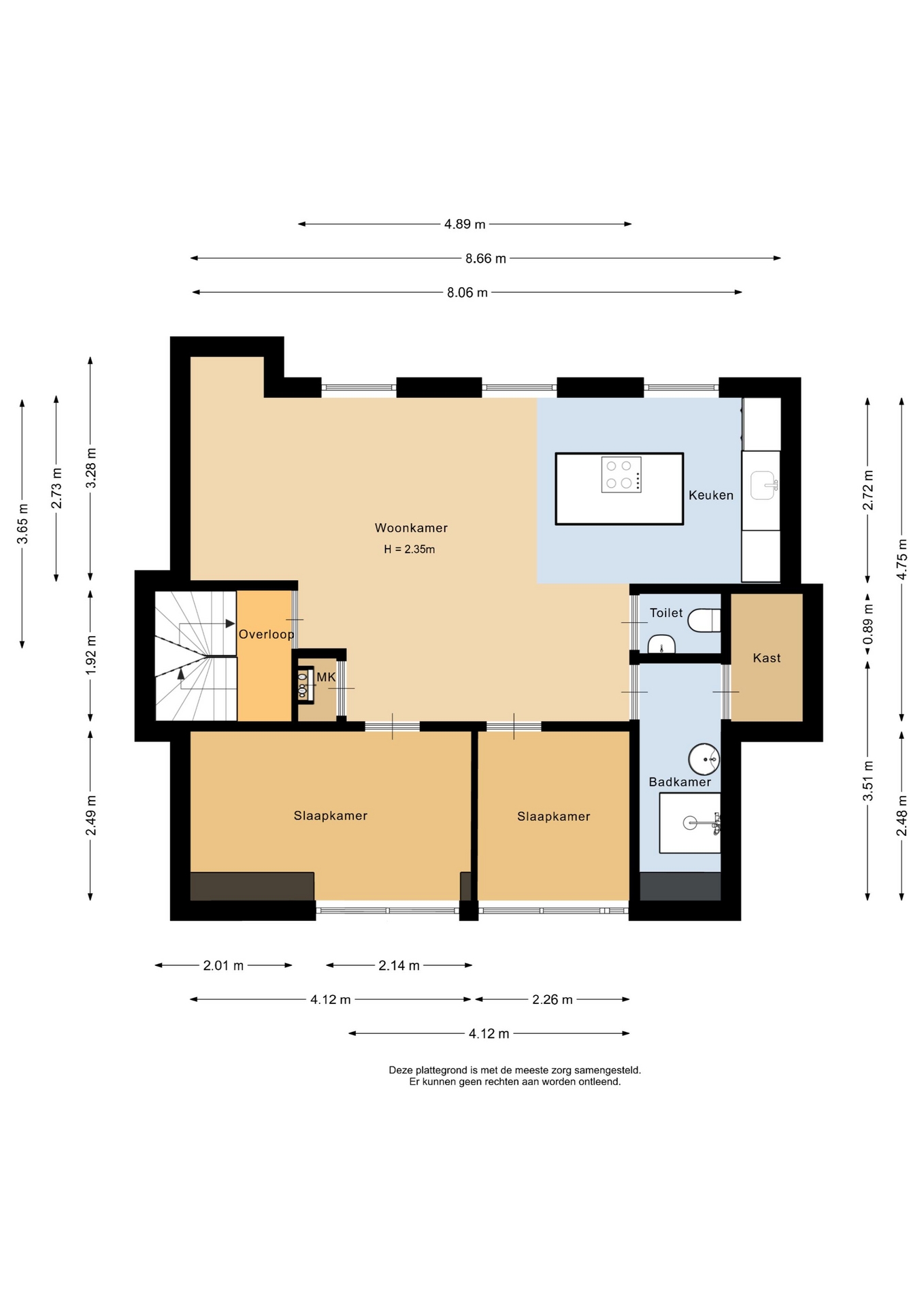 “Deze informatie is door ons met de nodige zorgvuldigheid samengesteld. Onzerzijds wordt echter geen enkele aansprakelijkheid aanvaard voor enige onvolledigheid, onjuistheid of anderszins, dan wel de gevolgen daarvan. Alle opgegeven maten en oppervlakten zijn indicatief.”