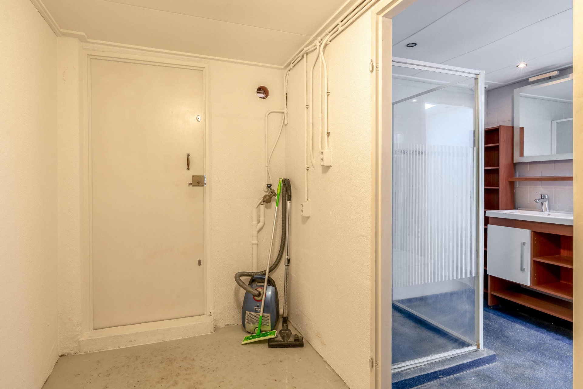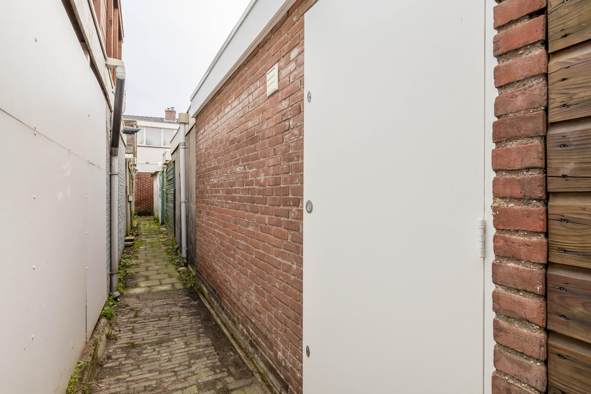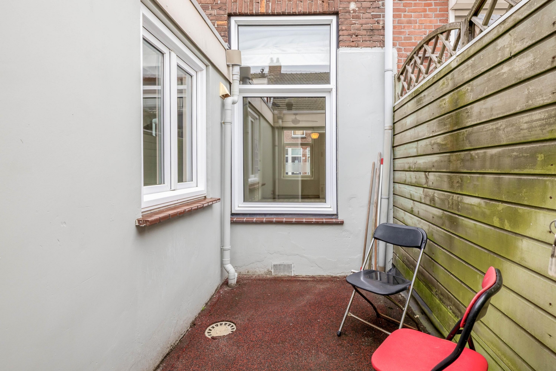 Vanuit de badkamer heb je toegang tot de inpandige berging met wasmachine- en drogeraansluiting en de opstelplaats van de C.V.-ketel. Ook bereik je hier de binnenplaats met achterom.