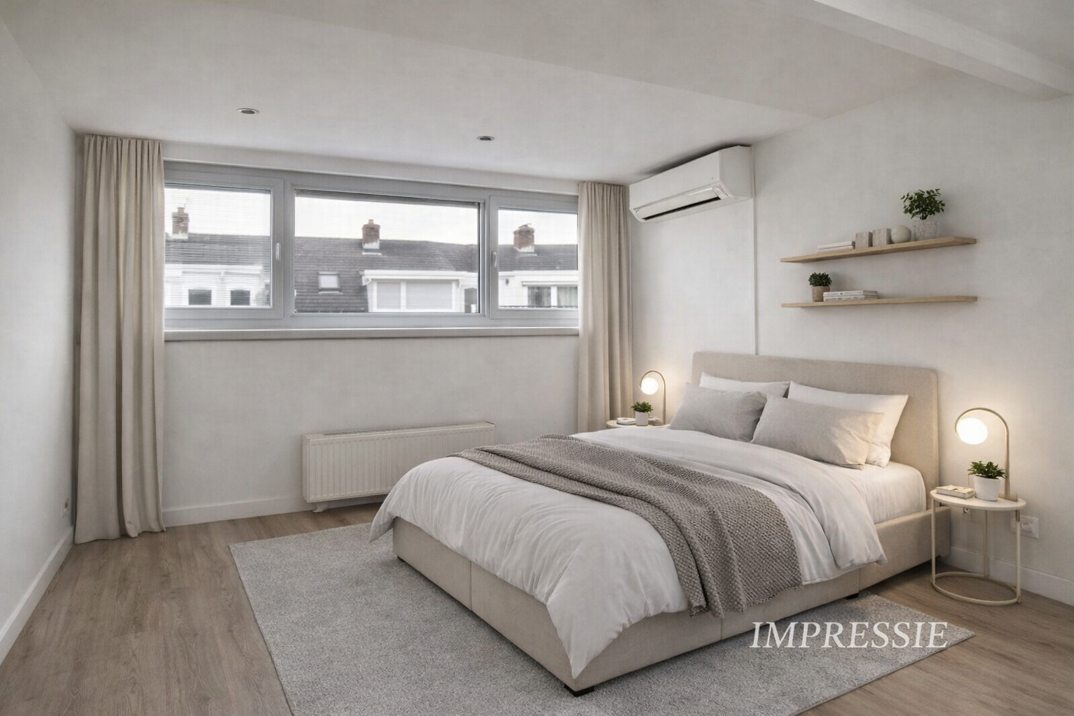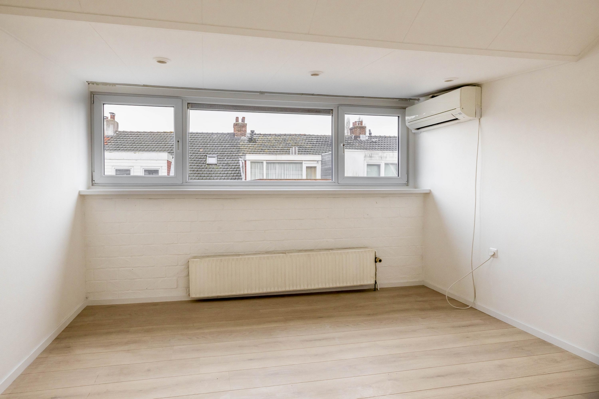 De ruime slaapkamer aan de achterzijde beschikt over een airco-unit. Dat zorgt voor aangename temperaturen tijdens warme zomerdagen.