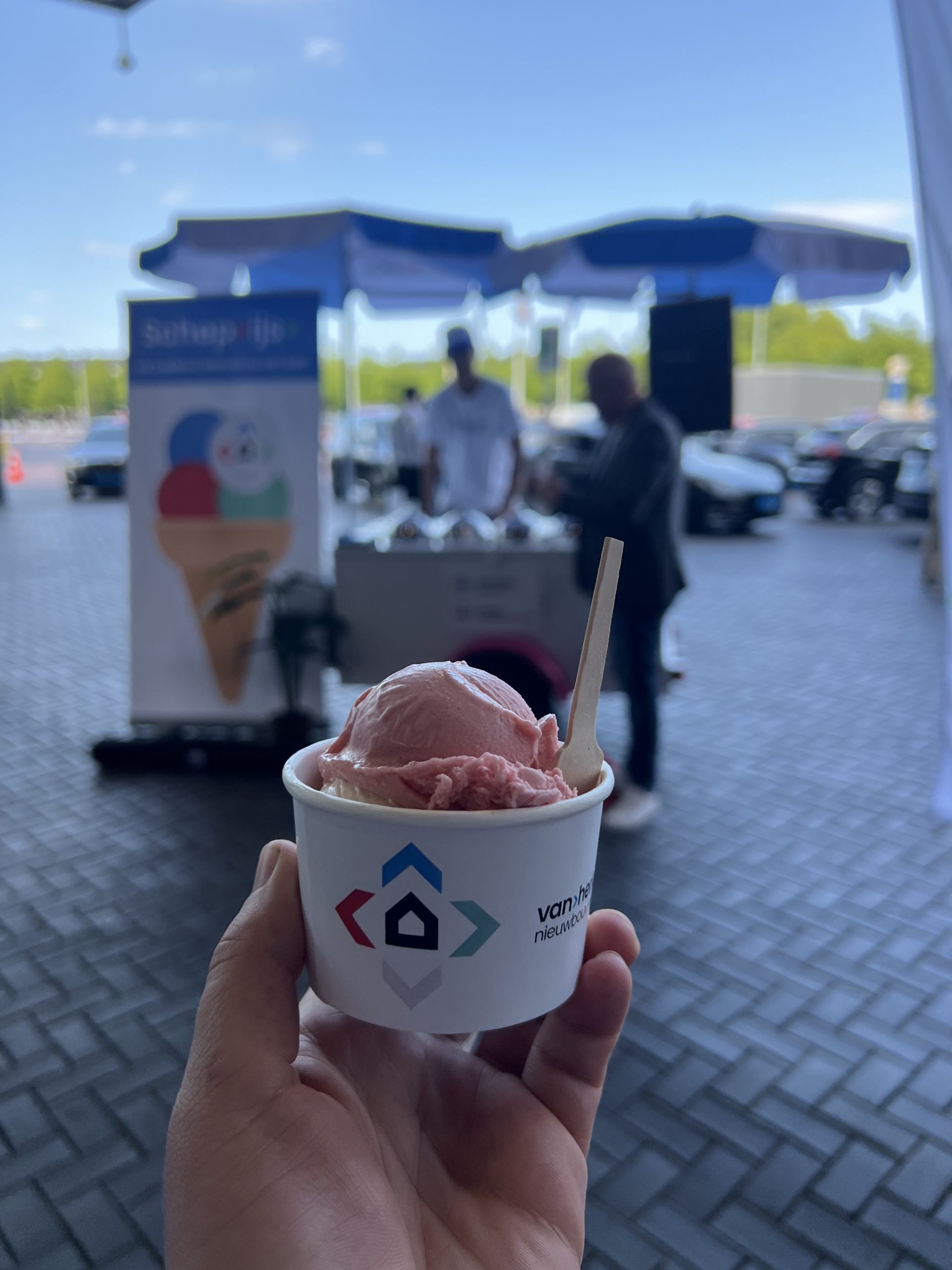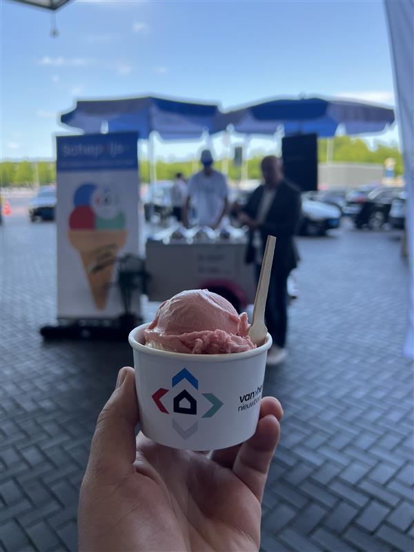 We wilden niet alleen vertellen wie we zijn, maar vooral ook laten zien waar we voor staan. Daarom kozen we voor een opvallende en toegankelijke manier om met bezoekers in contact te komen: Schep IJs – in de kleuren van ons logo – als uitnodiging tot een goed gesprek. In totaal deelden we maar liefst 10.700 bolletjes ijs uit aan relaties, opdrachtgevers en geïnteresseerden.